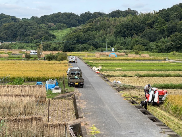 テラス席よりの中井町比奈窪大町稲刈り風景 2025.9.27土曜日撮影